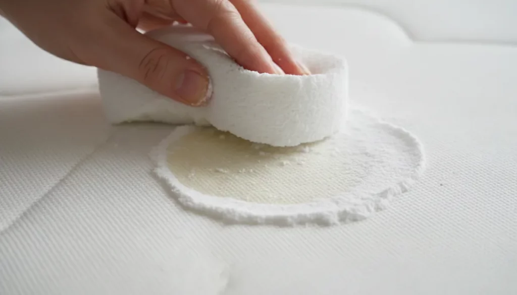 3. Deja que se seque completamente sobre el colchón. Al secarse, la pasta se volverá blanca.