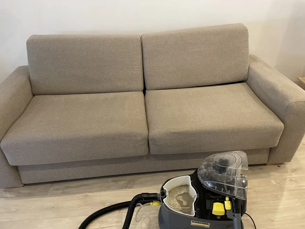 Un servicio de limpieza de sofás a domicilio en Barcelona utiliza maquinaria de inyección-extracción profesional.