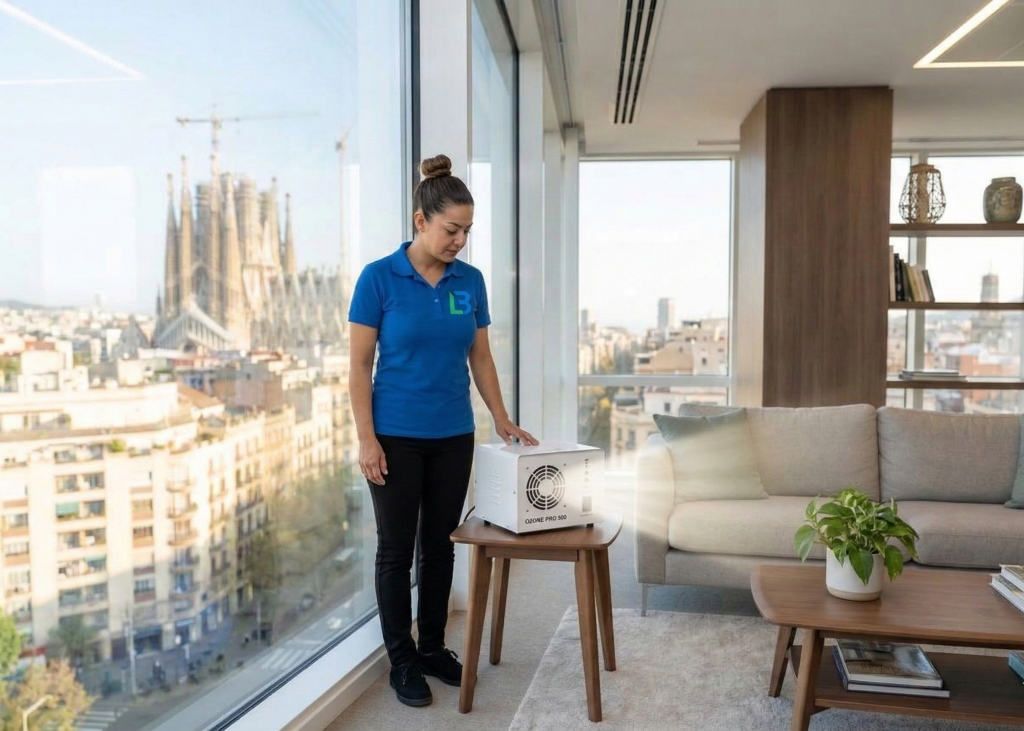 Cuando los remedios caseros se quedan cortos, has lavado todo y el olor sigue impregnado en cada rincón, la ozonización es el único método 100% garantizado. En Limpieza BCN utilizamos cañones de ozono industriales. Este gas penetra en todas las superficies (paredes, alfombras, interiores de armarios) y destruye el alquitrán y la nicotina a nivel molecular, dejando el ambiente completamente purificado, desinfectado y con olor a «limpio».