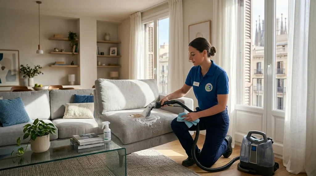 En Limpieza BCN somos especialistas en limpieza de sofás a domicilio en Barcelona. No nos limitamos a la superficie: utilizamos maquinaria industrial de inyección-extracción que lava el interior de tu sofá y aspira la suciedad biológica al instante.